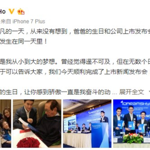 何猷君在自己的微博上发布了与父亲分享喜悦照片的画片,若创梦天地成功IPO,他将成为整个港股上市公司中最年轻的高管。1995年出生的何猷君2017年年中加盟创梦天地,担纲CMO(首席营销官)一职,其母梁安琪女士的Vigo Global则在Pre-IPO轮次进入,持有创梦天地1.11%的股份。