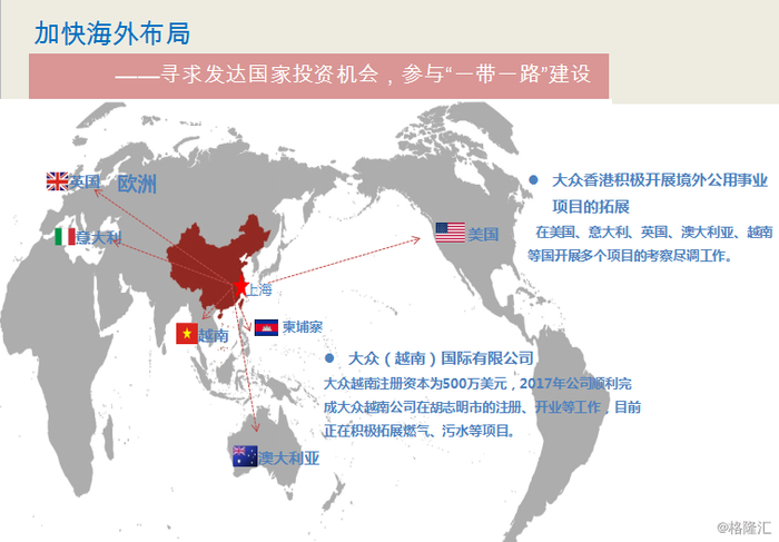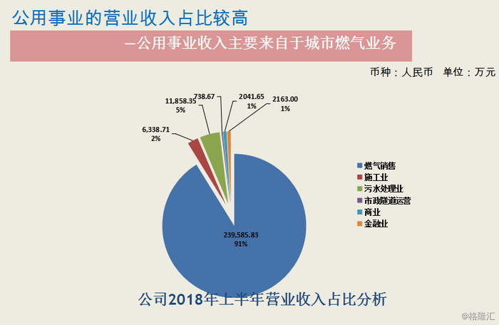 大众公用的公用事业共有四类,一是城市燃气,二是污水处理,三是城市交通,四是海外项目投资运营。