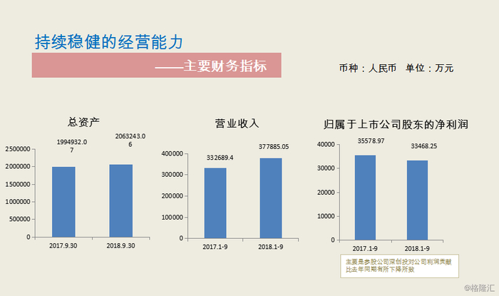 近几年,深创投已经进入了收益稳定时期。按照13.93%的权益,深创投每年能够为公司贡献1.7亿左右的净利润。2018年1-9月,深创投贡献了不到1亿,同比有所下降,主要是因为近年实行减持新规使得股票出售减少,以及证券市场下跌较多也影响了收益。公司表示,根据深创投手里已经上市的股份和即将上市的股份,相信在未来几年收益还会继续提高。