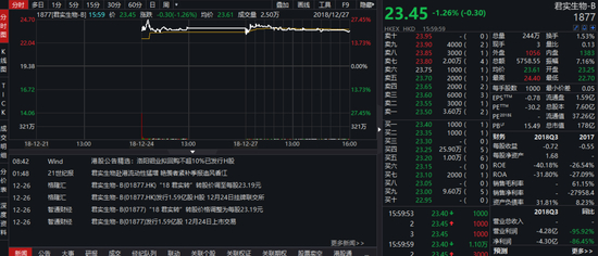 12月22日公司股票首次挂牌,股价便暴涨22%收盘,此后股价一直处于高位。不过,随着信达成为第二个获批上市的国产PD-1,公司股价明日承压,信达生物的股价图则充满了想象空间。