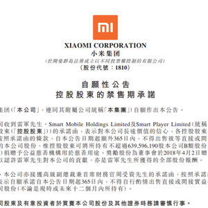 小米集团:控股股东承诺将禁售期延长一年