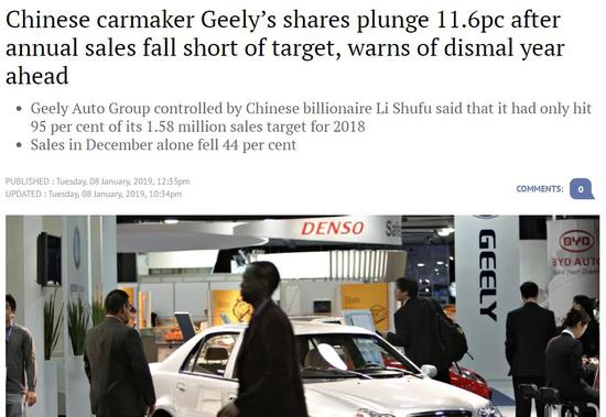 刚刚过去的一周(1月7日),吉利公布12月销量,同比下滑44%,随后转天股价暴跌11%。销量下滑、股价下跌、以及投资Daimler失利,让吉利失去了信心,制定的2019年度目标只有151万辆,比2018年的计划不增反降。