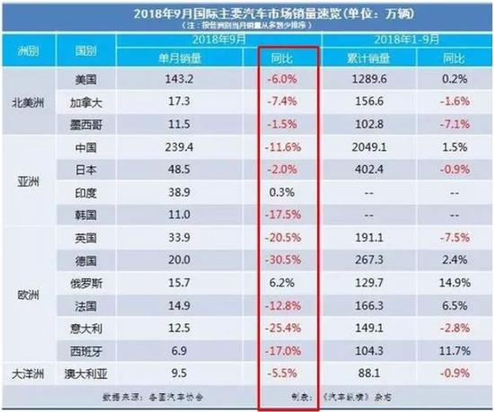 根据三季度统计数据,2018年9月,全球主要国家的汽车销量都经历了下滑,而前三季度总计销量也有多个国家出现下滑(中国仅增长1.5%)。