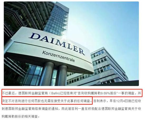 同样喜上加喜的是,德国媒体也披露,这笔交易并不涉及监管红线,德国联邦金融监管局(BAFIN)也以完成调查,并决定无需对吉利进行任何罚款事宜。