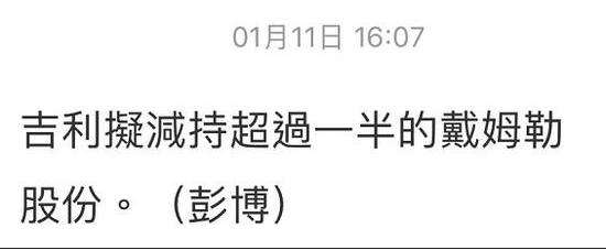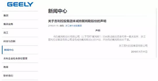 关于吉利减持戴姆勒的消息,最早见于Bloomberg援引“知情人士”的报道。但吉利的官网上迅速发布了辟谣消息。
