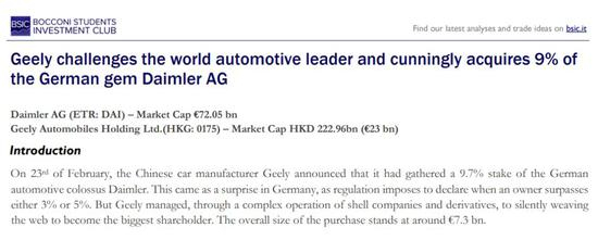 带着试一试的态度,我在Google上面搜了“Geely Daimler leverage”等字样。然而搜出来的结果可令人吃惊非小!