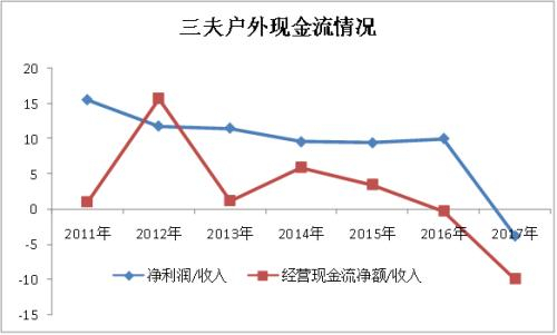 表面看来,三夫户外毛利率做到46%一点不奇怪,应是一门好生意。然而,经销商的本质决定了“东边不暗西边暗”,现金流那真是没法看啊,对比一下净利率和“现金流净额/收入”,一图抵万言: