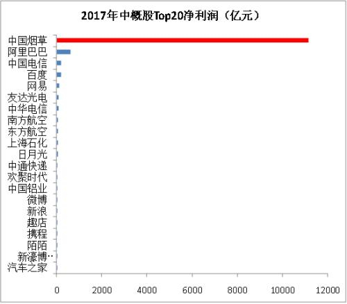对比中国烟草与中概股TOP20,我们发现中国烟草的净利润,相当于: