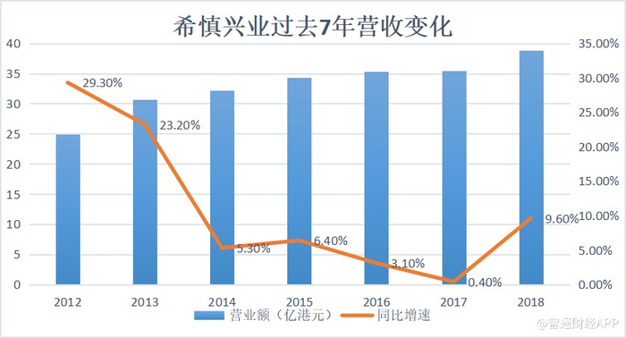 希慎兴业旗下商铺的租金收入与商户的销售表现挂钩,零售环境强弱直接影响商铺收入。2018年港珠澳大桥及高铁通车为香港增加了人气,全年访港旅客人数同比增长17.9%,其中内地访港旅客的升幅更达21%,香港零售业销售额同比增长8.8%,不过期内,希慎兴业增长最快的业务不是商铺,而是写字楼。