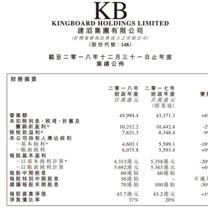 公告显示,集团为全球最大的覆铜面板生产商,具备成熟且完善的覆铜面板垂直整合生产链。覆铜面板部门面对疲弱的市场状况,快速因应需求转变,增加高附加值产品销售,平均价格因而上升。覆铜面板部门营业额(包括分部间的销售)上升3%至171.45亿港元。但由于铜及化工等原材料价格大幅攀升,覆铜面板价格上升未能完全覆盖成本上涨,引致利润率回落。未扣除利息、税项、折旧及摊销的盈利则下降21%至35.37亿港元。