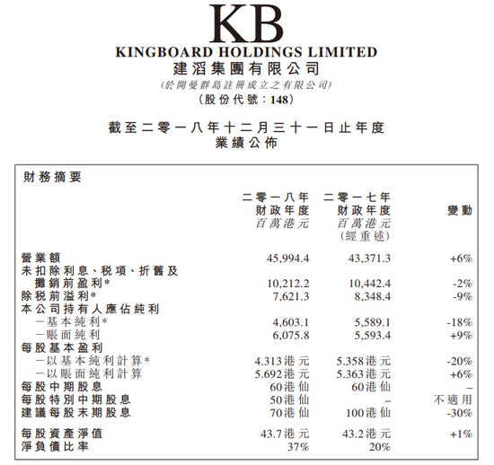 建滔集团2018年纯利升9%至60.76亿港元 末期息70港仙