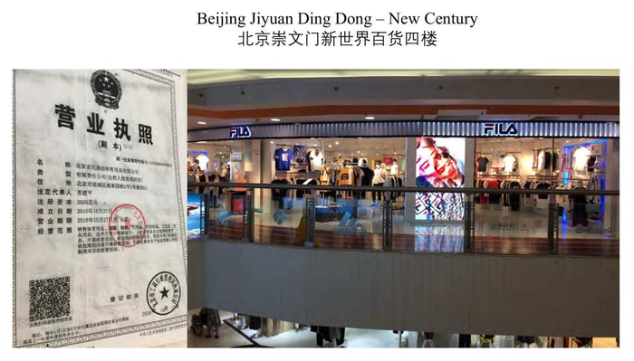 安踏的在线斐乐商店定位显示在北京有42家店,在河北有56家店。然而,SAIC(国家工商总局)的记录显示,2018年斐乐 Style(100%归安踏所有)在北京只有一家分公司,而在整个河北省却没有。我们调查的其他安踏斐乐零售公司中,没有一家显示出斐乐在北京或河北的分公司记录。
