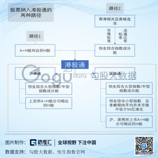 当然,两种路径都是有条件的,比如说路径1里相应A股被交易所实施风险警示、暂停上市或者进入退市整理期的的话,相应的H股也会被调整出港股通名单;路径2则需要满足恒生综指的市值标准和流动性标准,同时平均自由流通市值大于50亿港元。