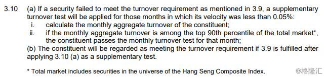渣打银行上期因为HSCI新增的流动性备用计算标准(公司月总成交额累计排名在候选池月总成交额前90%)则而进入HSCI。但是这次通过计算,渣打银行按备用计算方式有几期刚好在90%附近,因为计算误差问题,可能也存在被调出的风险。