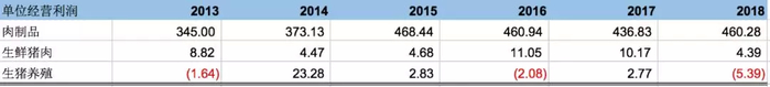 从单位经营利润来看,肉制品基本上比较稳定,消费品属性强,而受猪价波动影响呈现周期性质的业务是屠宰和生猪养殖,去年美国猪价低迷,导致生鲜猪肉经营利润大幅减少,而生猪养殖业务还录得亏损。