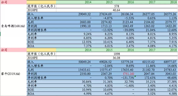 其实单纯从各项财务指标表现来看,作为饮料行业代表的消费公司蒙牛和青岛啤酒,虽然收入、净利润的稳定性、净利润率、ROE、ROA各项指标都没有比万洲国际和双汇发展好,但估值却高达30-40倍市盈率,感觉不太合理。