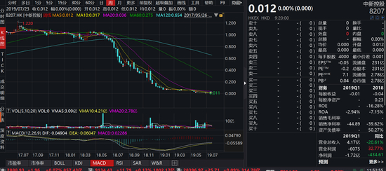 中新控股现价0.012港元,是不折不扣的“仙股”。事实上,中新控股股价从2018年尚在1港元之上,到如今股价已经不足0.1港元,跌幅几乎达到了100%。