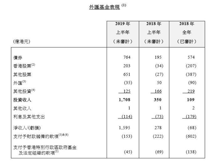外汇基金在2019年上半年达到1708亿港元的投资收入,其主要组成部分包括: