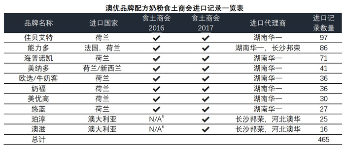 食土商会网站(拥有许可证数据库)和 Ausnutria B.V. 荷兰监管文件都表明,在 2016 和 2017 年,湖南华一是澳优婴幼儿配方奶粉产品在中国的主要进口代理商。