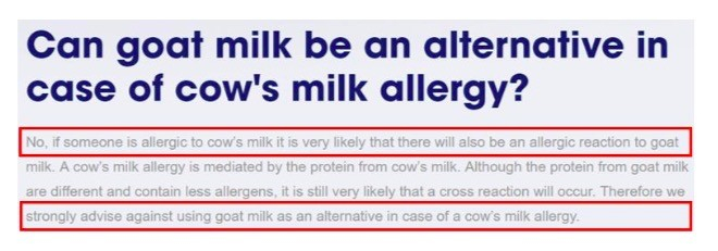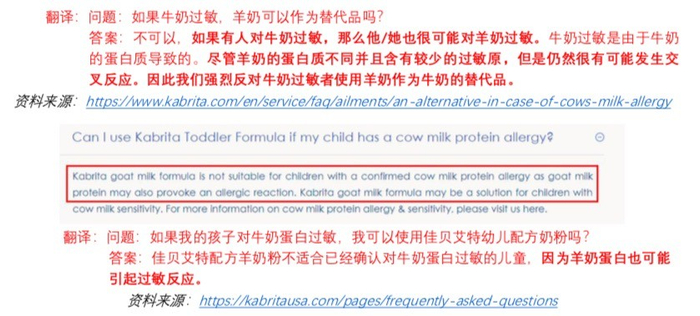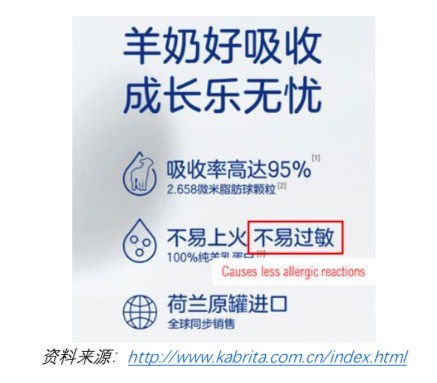 佳贝艾特在中国的宣传也夸大了羊奶粉作为牛奶过敏者可使用的替代品的功能。