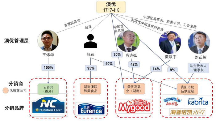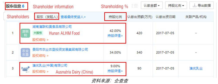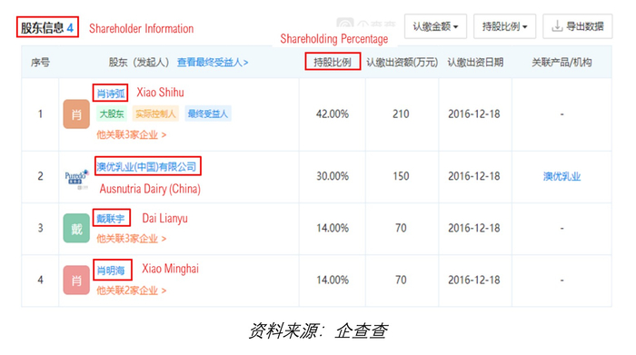 企业记录还显示澳优的中国区副总裁肖诗弧持有美优高湖南 42%的股份。