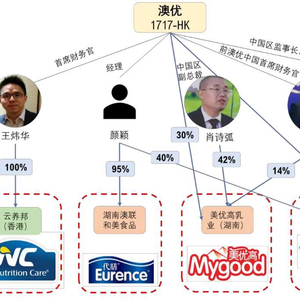 澳优中国目前持有贵阳市奶品供应有限公司(“贵阳奶品“)9%的股份。澳优中国原先持股比例为 35%。在2018年12月29日,澳优中国将其在贵阳奶品26%的股权转给了澳联和美(该公司由公司高管颜颖控股)。澳联和美,即前文所提的未披露关联方,现在持有贵阳奶品 42%的股权。澳优的高管刘跃辉目前是贵阳奶品的法定代表人和董事长。
