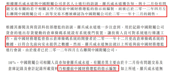 罗兵咸永道在调查中发现澳优中国的前财务总监捏造或直接指示下属捏造会计文件来误导审计师和投资者。罗兵咸永道没有直接指出这位前财务总监的名字,但详细描述了他的不当行为。