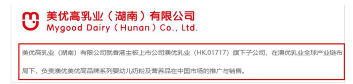 这家公司无疑非常重要。美优高湖南网站声称,美优高湖南是澳优旗下子公司,负责美优高品牌系列婴幼儿奶粉及营养品在中国市场的推广与销售。