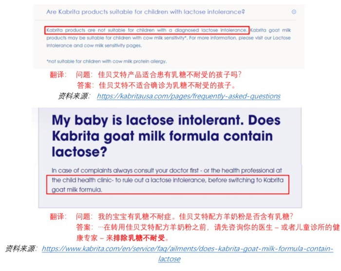 与此截然不同的是,佳贝艾特的美国和欧洲网站都清楚地警告父母,如果他们的孩子被诊断出乳糖不耐受,那么他们就不应该使用佳贝艾特配方羊奶粉。
