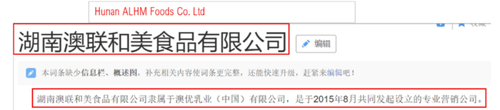 澳联和美甚至在百度百科上将自己描述为澳优中国的营销子公司。