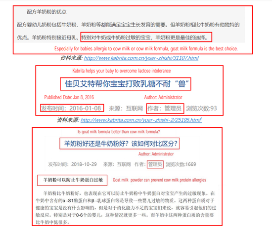 佳贝艾特中文网站在宣传文章中声称,对乳糖不耐受或对牛奶蛋白过敏的婴儿来说,其配方羊奶粉是牛奶 粉的健康替代品, 然而这样的宣传显然是误导,因为在佳贝艾特美国和欧洲的网站上,澳优清楚地警告父 母,乳糖不耐受或者对牛奶过敏的婴儿不应该使用佳贝艾特羊奶配方奶粉。