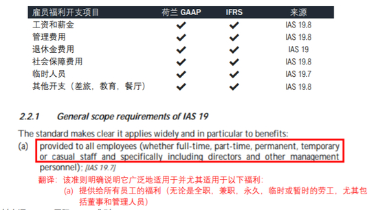 在其 2017 年文件“IFRS 和荷兰 GAAP 比较”中,毕马威表示,在荷兰 GAAP 里,“和 IFRS 一样,雇员福利的 负债和开支一般于提供服务期间进行确认。”工资和薪金的会计处理并不复杂。他们通常在发生时计入费用。 所以为什么在荷兰 GAAP 和 IFRS 之间会有任何工资费用确认的差异?