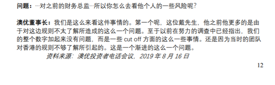 澳优现在尝试否认肖诗弧的高管职位,这也证明了澳优和其澄清公告的可信度极低。 在投资者电话会议上,澳优甚至尝试淡化之前的企业丑闻。