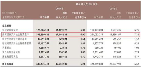 在其2017年年报披露的各项生息资产中,投资类金融资产以6.90%的平均收益率成为该行当年最赚钱的资产。