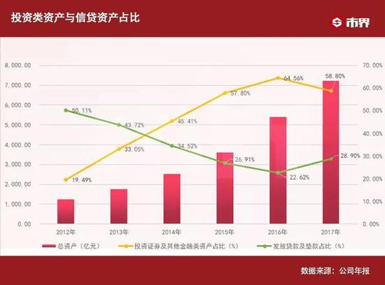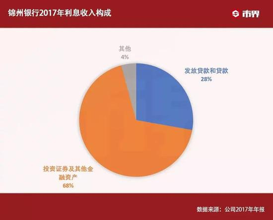 2017年,该行投资证券及其他金融资产产生利息收入271亿元,占利息总收入比重为68%;而贷款产生的利息收入为111亿元,占利息总收入比重约为28%。
