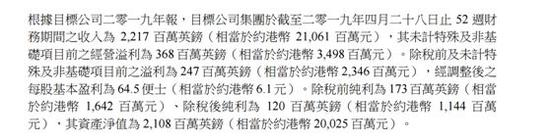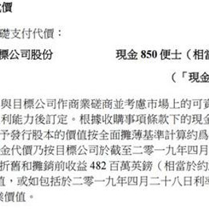 公告显示,Greene King截至2019年4月28日止52周财务期间收入为22.17亿英镑(相当于210.61亿港币),其未计特殊及非基础项目前之经营溢利为3.68亿英镑(约为34.98亿港币),除税前及未计特殊及非基础项目前之溢利为1.73亿英镑(约为16.42亿港币);净资产值为21.08亿英镑(约合200.25亿港币)。