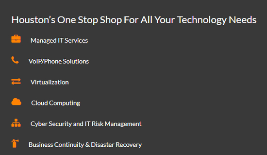 目前主要提供下述服务:托管IT服务、 VoIP/电话解决方案、虚拟化、 云计算、网络安全和IT风险管理、 业务连续性和灾难恢复。