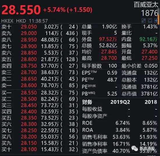 百威亚太市值高达3814亿港元,在港股上市公司市值排行榜中位列港股20强,市值将超过保诚、港交所、新鸿基、恒生银行等一干龙头,市值更是远超小米。
