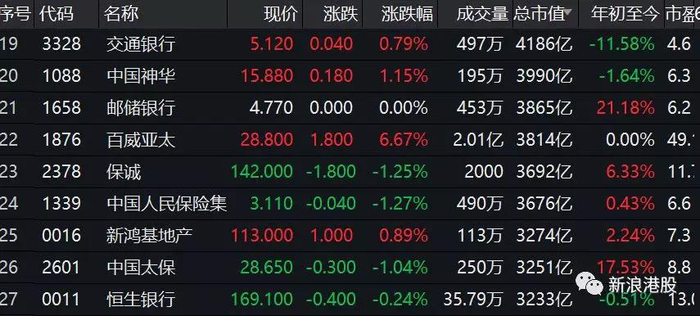 市值逼近500亿美元,列港股前20大市值公司