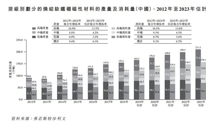 (图6:钕铁硼磁材产量和消耗量图,招股说明书)