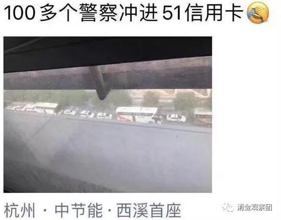 51信用卡遭到警方调查,杭州某金融科技公司高管透露照片显示,现场路边停靠多辆警车;有消息表示,有一百多名警察冲进51信用卡所在西溪的办公大楼;有51信用卡公司员工对朋友保平安称,自己没被抓,因为警车坐不下了。