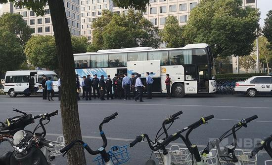 据每经,三点左右,开始有警方带人和资料纸箱下楼。现场除了警车之外还有三辆客运大巴车,警方人员和51信用卡人员均上了大巴车。3点15分第一辆客运大巴车开走。3点23分,又有多名员工被带上大巴车,记者看到,部分人员带了口罩。第二辆和第三辆大巴车分别于3点30分和3点44分开走。