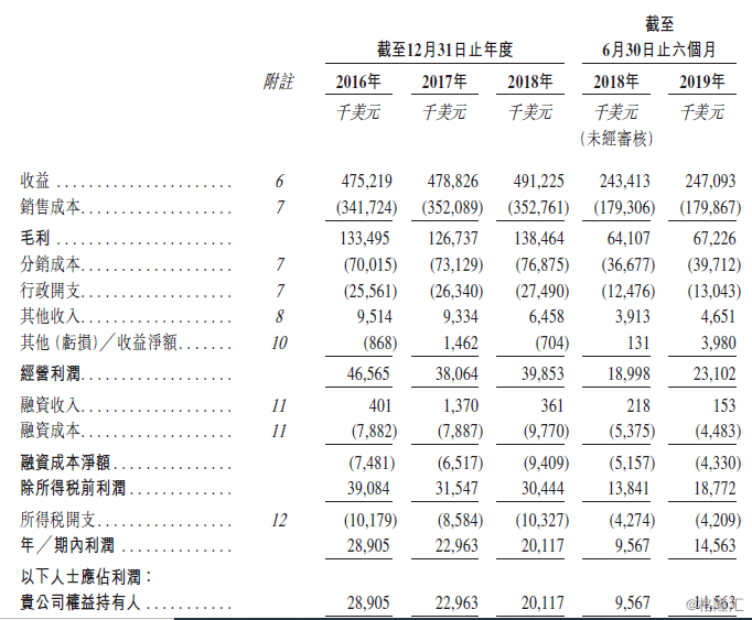 回顾期间,公司收益由2016年的4.75亿美元增加3.4%至2018年的4.91亿美元。其中,越南市场增长16.5%,而中国市场则减少1.9%。按人民币计算,期间中国市场收益跌幅为2.2%,主要受中国转向网购及消费偏好(更倾向健康产品)改变影响。
