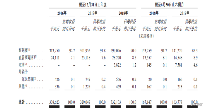 而公司产品在中国的销售则主要通过经销商、直营商超客户、电商及外销施氏集团的方式,截至今年6月30日,经销商贡献收入占比持续下降至86.3%,但电商及商超客户(如大润发及家乐福)贡献收入占比则上升至4.6%及8.9%。