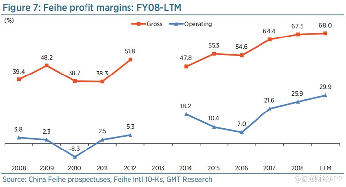 图7:飞鹤利润率:2008财年至过去12个月