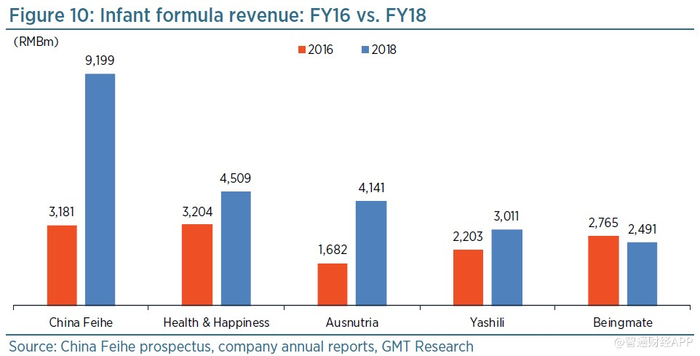 如图10所示,在国内同行中,飞鹤一直表现突出,在过去几年实现了明显更高的收入增长。