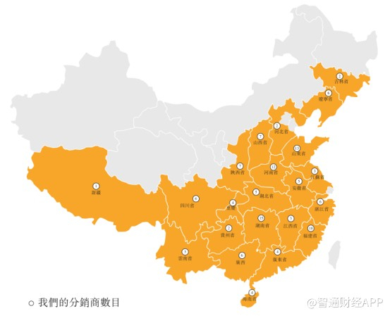 在自有品牌上,据最新数据显示,公司拥有126名分销商,销售网络覆盖中国一个直辖市、两个自治区及19个省份,主要于大卖场、超市、杂货店及糖果食品店售卖。其中,就分销商数量来看,则主要集中在湖南、山东、河南、福建等省份。