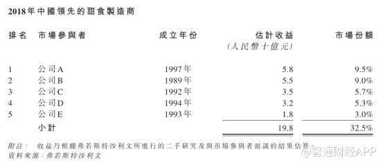 久久王来自于我国糖果生产大省——福建省。作为一家老牌糖果厂商,公司于福建省甜食市场排名第二,区域市场份额达2.5%。而在全国甜食制造市场中,相对于五大市场参与者共占约32.5%市场份额而言,久久王市场份额达0.6%,规模在全国来看仍不算太大。