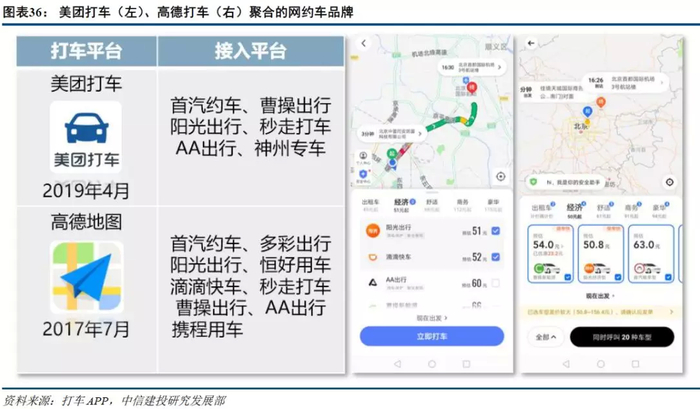 据报道,截至2019年7月,高德地图日单量70万单,美团目前规模为40-50万单,其中在上海和南京两个城市的自营约30多万单,聚合模式不到4万单,和自营差距较大。滴滴国内网约车日单量在2400万单左右。入驻的打车平台中,曹操日单在40万单左右,首汽是60-70万单,若延续发挥高效导流模式,美团聚合平台日单量仍有很大上升空间。