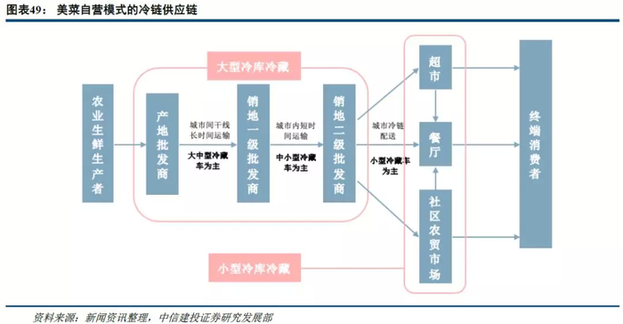 自营模式难以实现盈利,美团进军供应链是出于更好把控to B服务的逻辑。快驴进货暂时没有美菜的全面自营物流仓储,是通过和第三方合作实现的,但长期来看建立自营体系美团快驴有如下优势:
